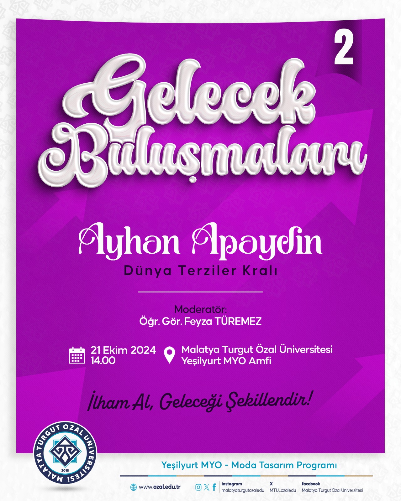 Gelecek buluşmaları etkinlikleri kapsamında Dünya'nın en iyi terzisi ünvanını almış olan değerli hemşehrimiz sayın Ayhan APAYDIN beyefendi ile yapılacak olan söyleşimize tüm öğrencilerimiz davetlidir.